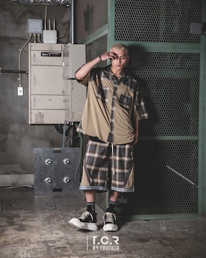 クラシカルなオープンカラースタイルに、先鋭的なアプローチを融合させたストリートシックなアイテム。上質なチェック柄コットンとリネンのラインアクセントデザインが深みを加え、その常識を打ち破るかのように配されたしなやかなメッシュ素材が、このシャツに唯一無二の個性を与えています。落ち着きのある大人の雰囲気を演出しながらも、確かな存在感を放つ一枚です。