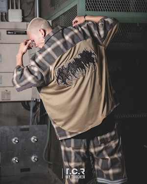 そしてバックデザインには、見る者を惹きつけるトライバル調のT.C.Rグラフィック刺繍が鎮座。ダークな美学とストリートのエッセンスが融合し、バックスタイルにも抜かりない存在感を放ちます。