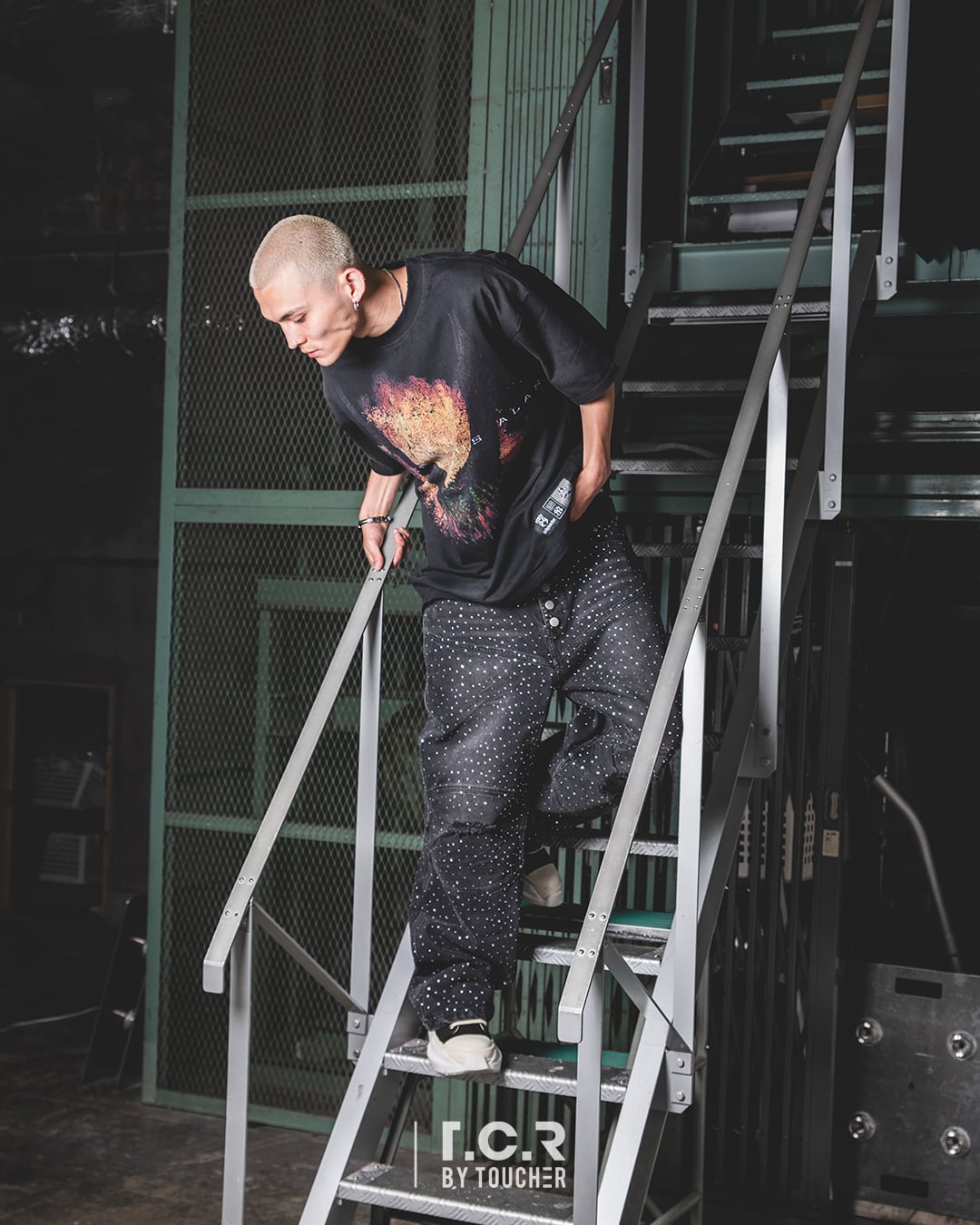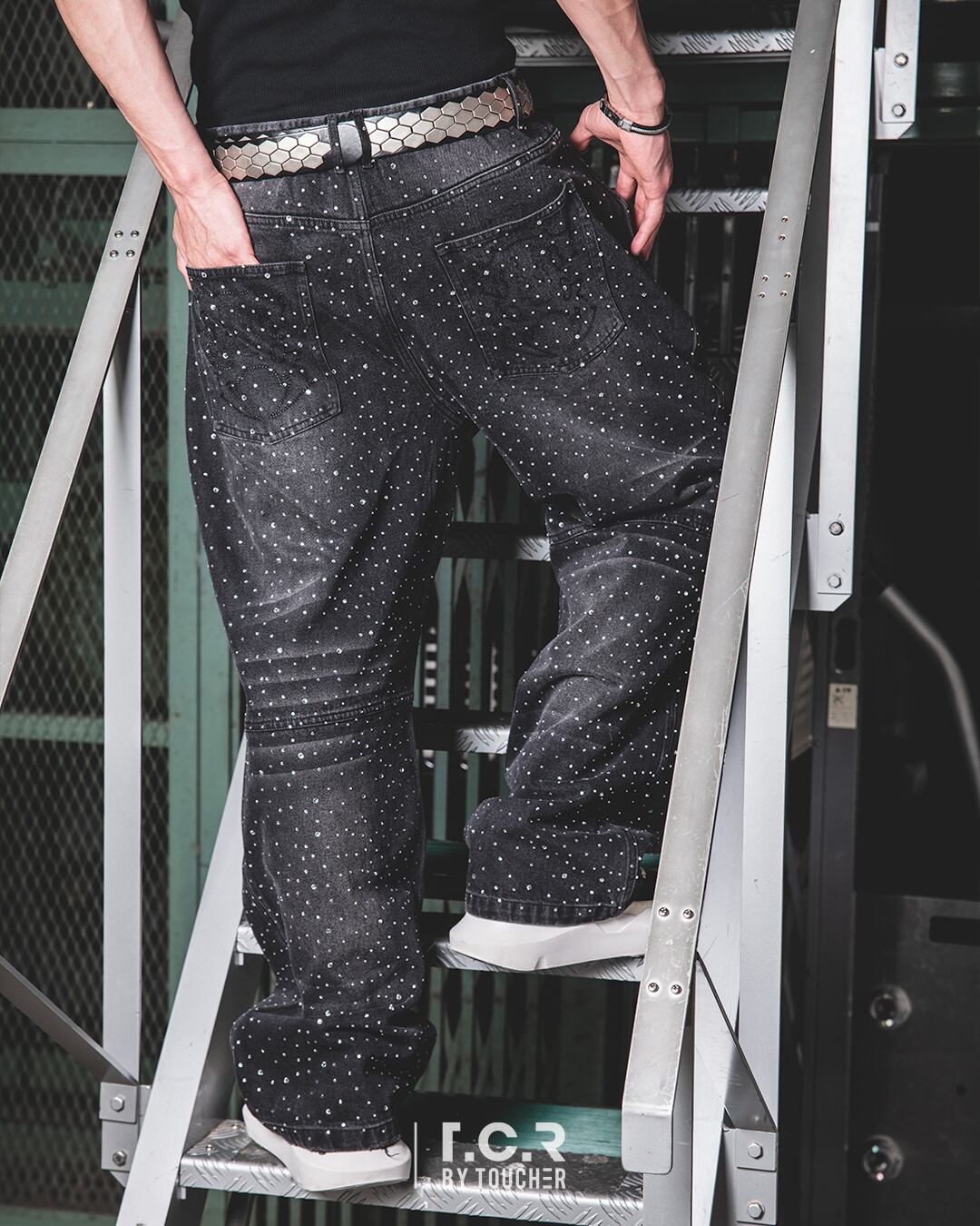 MODEL:T.C.R RHINSTONE DAMAGE BAGGY DENIM PANTS