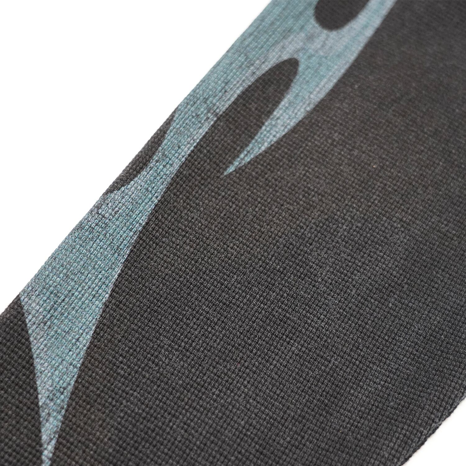 下層のロングスリーブの袖には、力強いフレイムパターンが流れるように配されています。静かなるダークトーンの中に、燃え盛る情熱とパンクのエッセンスを密かに宿します。
