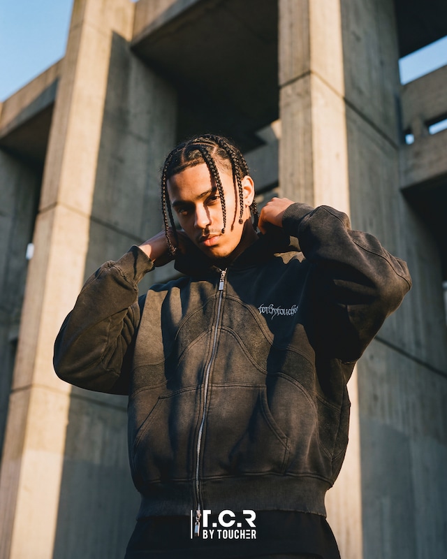 フード内部、袖、背面に至るまで計算されたディテールは、T.C.R BY TOUCHER の美学そのもの。
