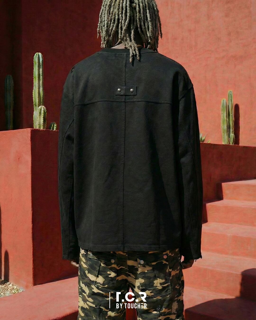 シンプルなバックスタイルながら、クロスパネルデザインにメタルスタッズディテールを配置、細部にまでT.C.Rらしいエッジの効いたこだわりが光ります。