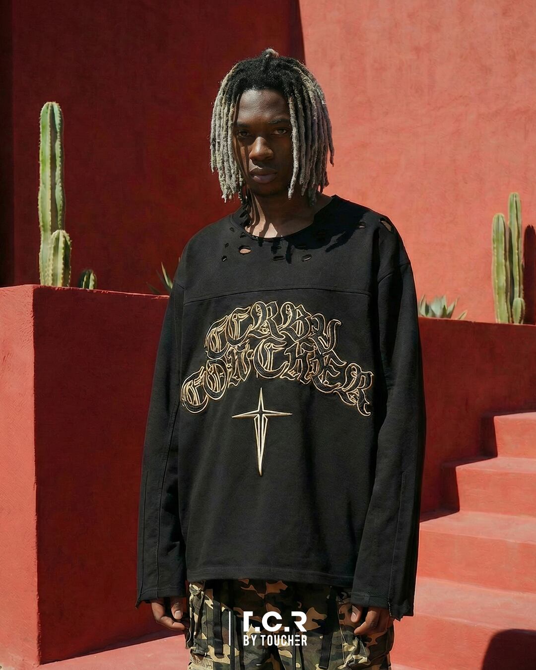 MODEL:T.C.R LOGO DISTRESSED PANEL L/S TEE
