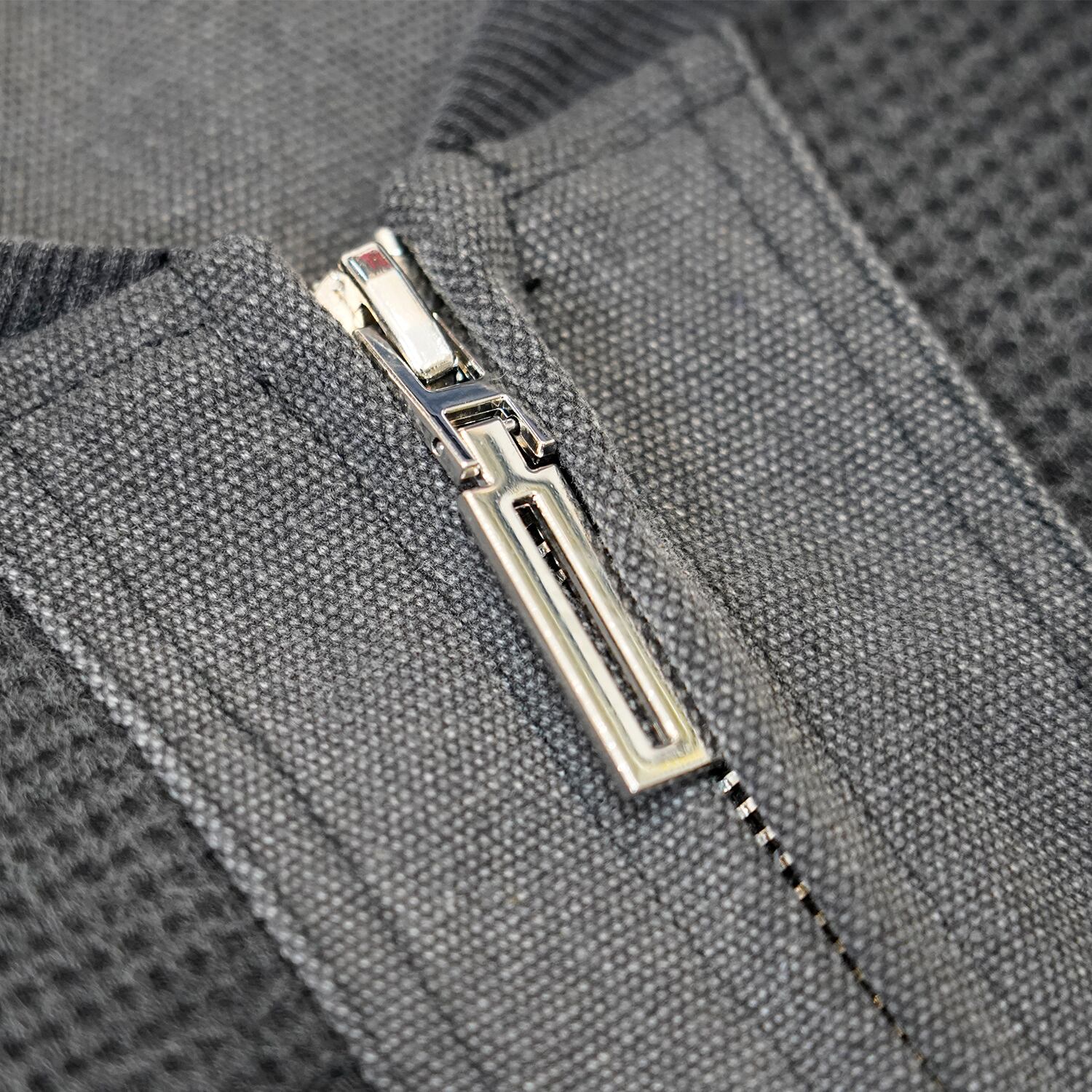 フロントダブルジップはデザインを損なわない、ミニマルで上質な仕様。