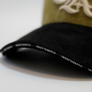 T.C.R LOGO FAUX SUEDE STRAP BACK CAP - GREEN / BLACK