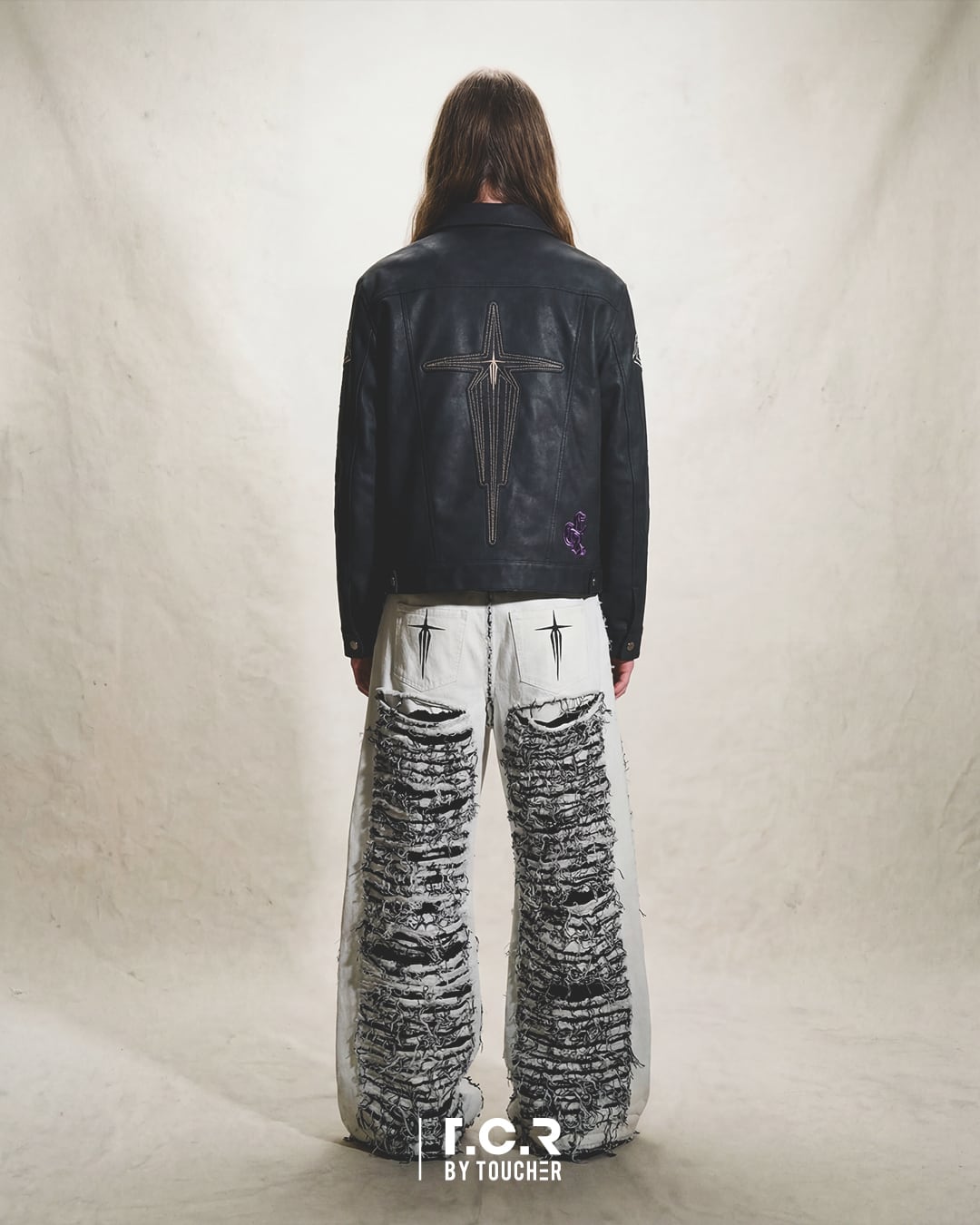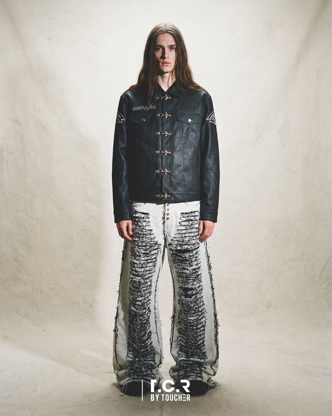 T.C.R BY TOUCHERの美学によって再構築したウォッシュド・フェイクレザージャケット。