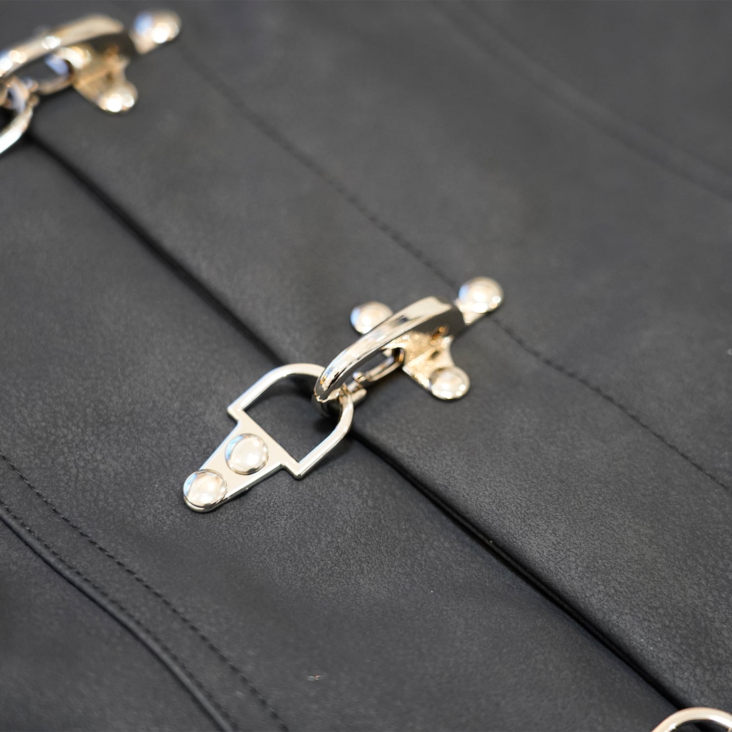 フロントにはファイヤーマンタイプのメタルバックルクロージャーを採用。