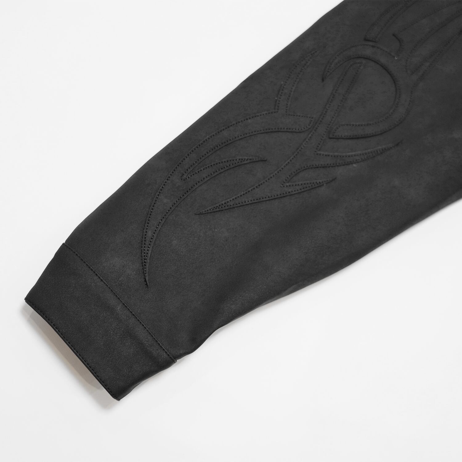 T.C.R WASHED FAUX LEATHER FLAME TRACKER JACKET - BLACK
