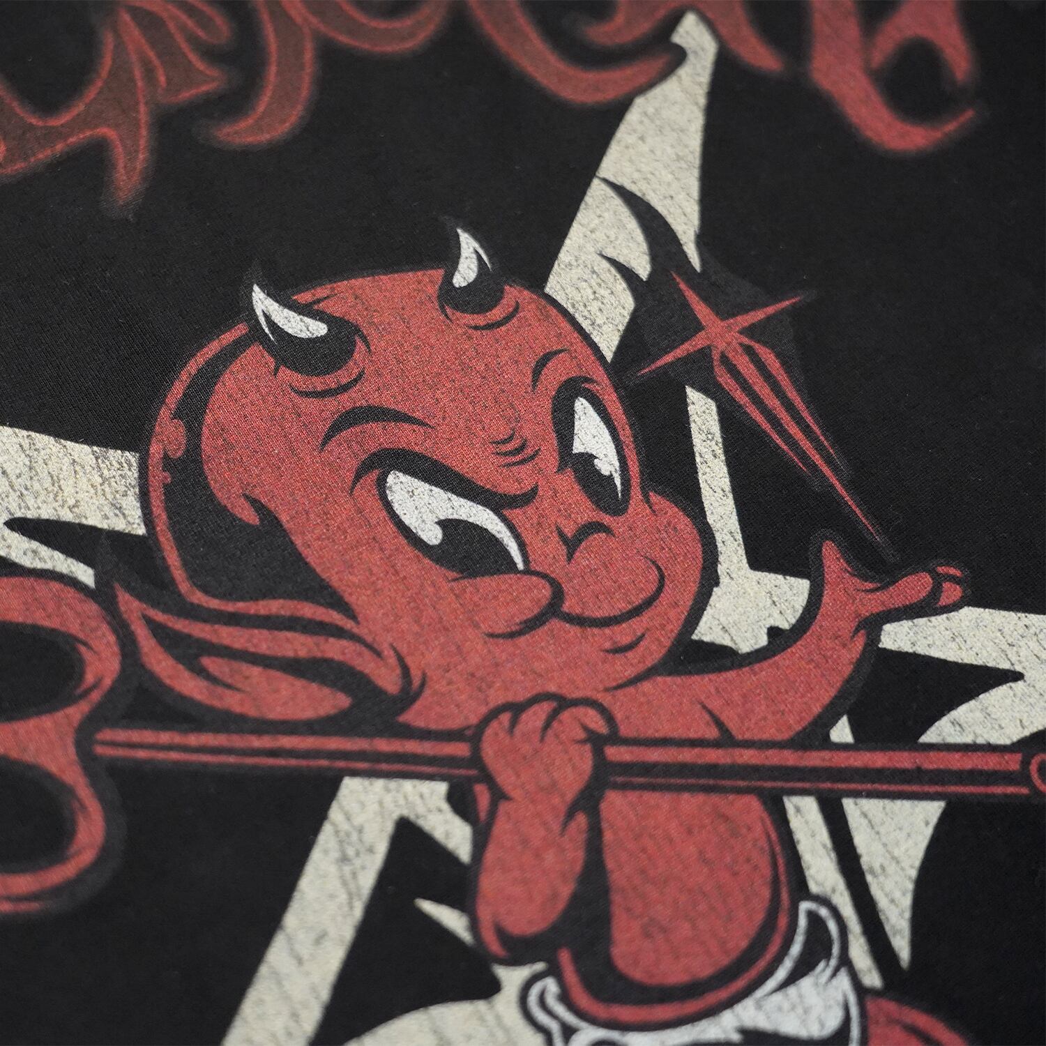 バックには、ブランドを象徴するデビルキャラクターを中心に据えたグラフィックを配置。