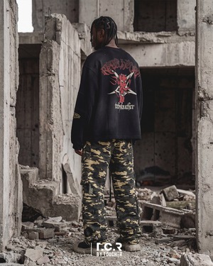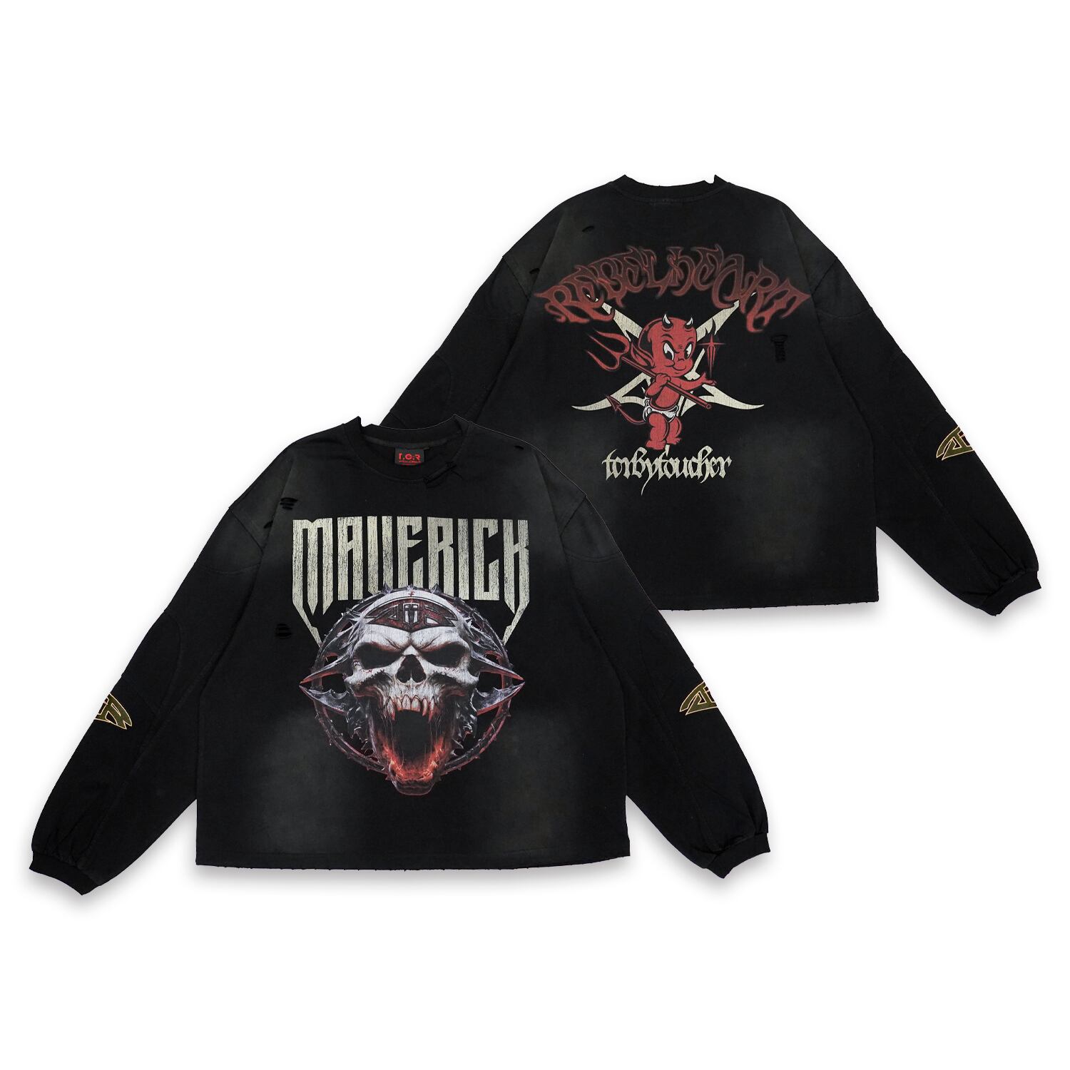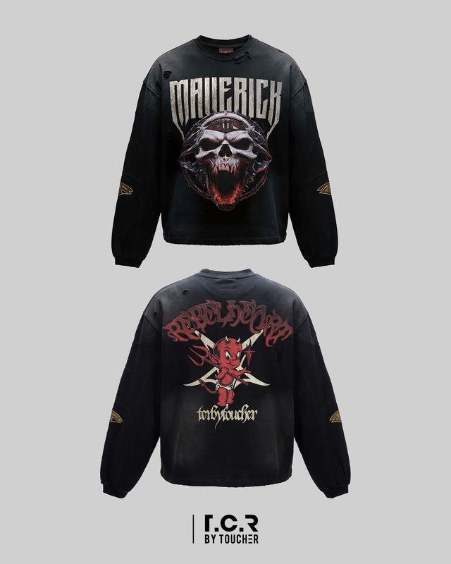 T.C.R BY TOUCHER が掲げる “REBEL” の精神を、グラフィックと構造の両面から具現化したロングスリーブTシャツ。
