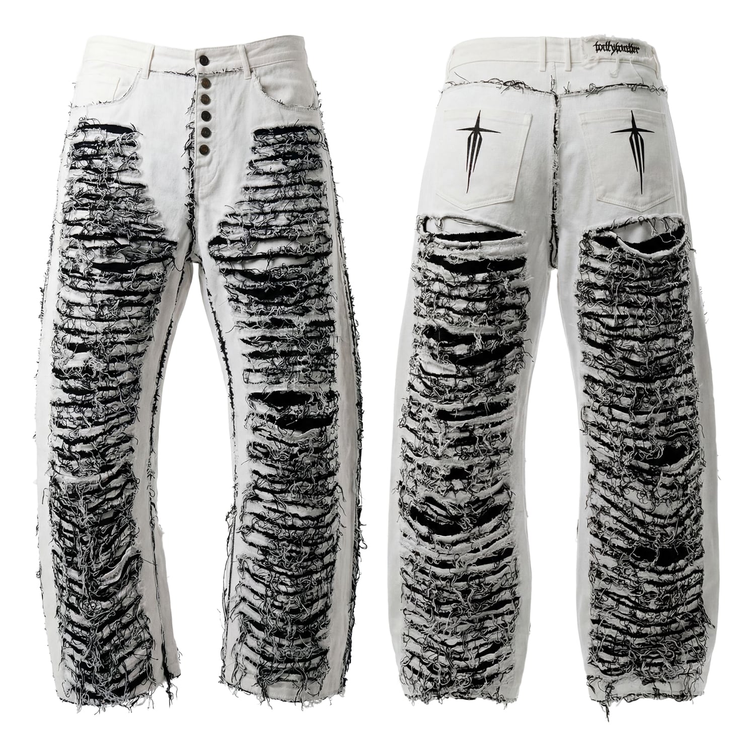 T.C.R DESTROYED CURVE LINE PANTS - WHITE