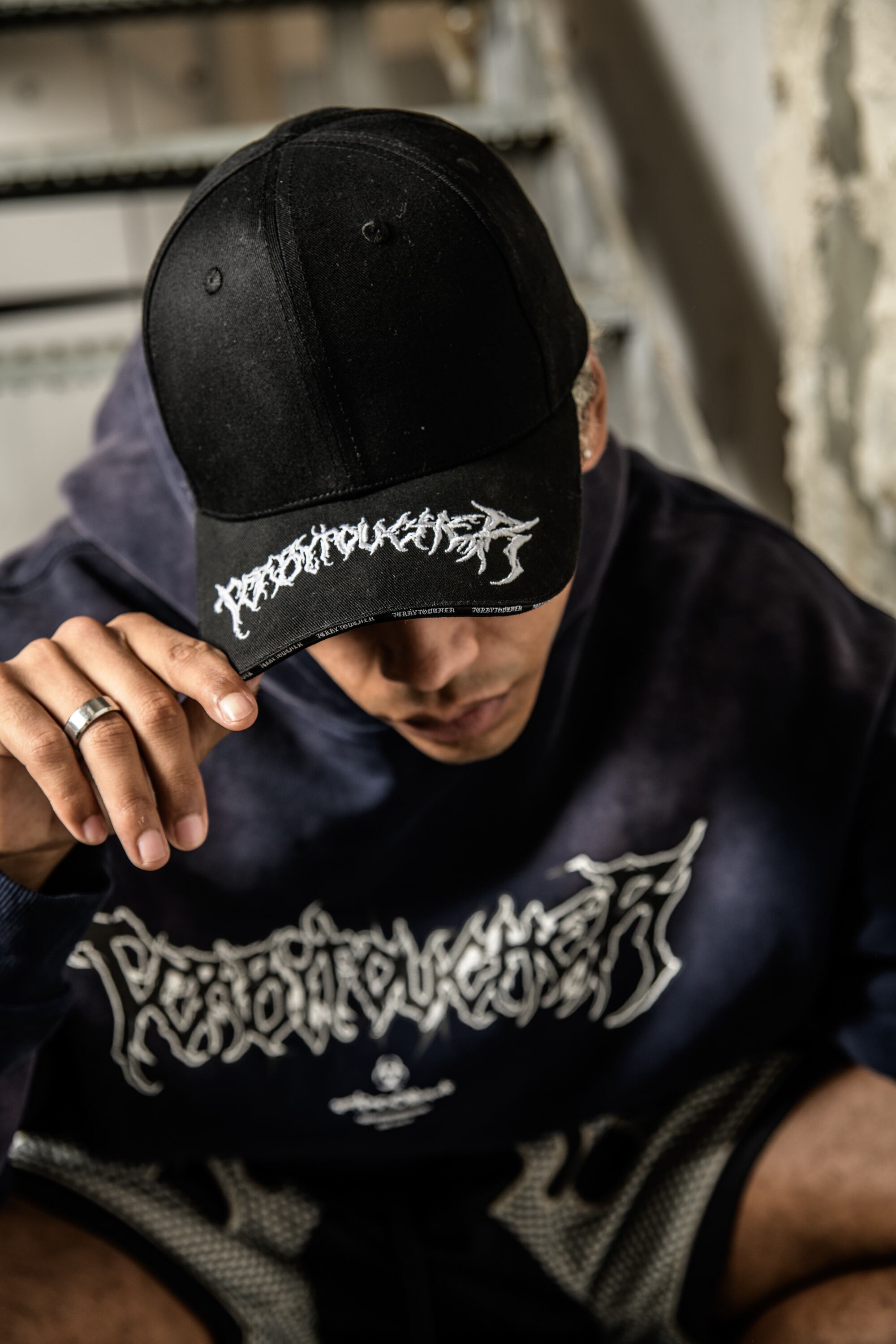 ブリムにMETALロゴ刺繍,バックにはモノグラムロゴ刺繍。