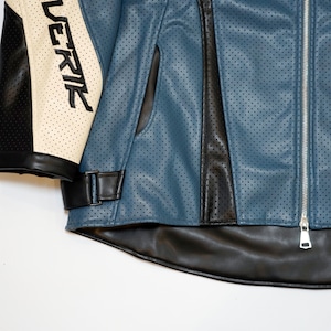 T.C.R MAVERIK MESH LEATHER MOTO JACKET - NAVY
