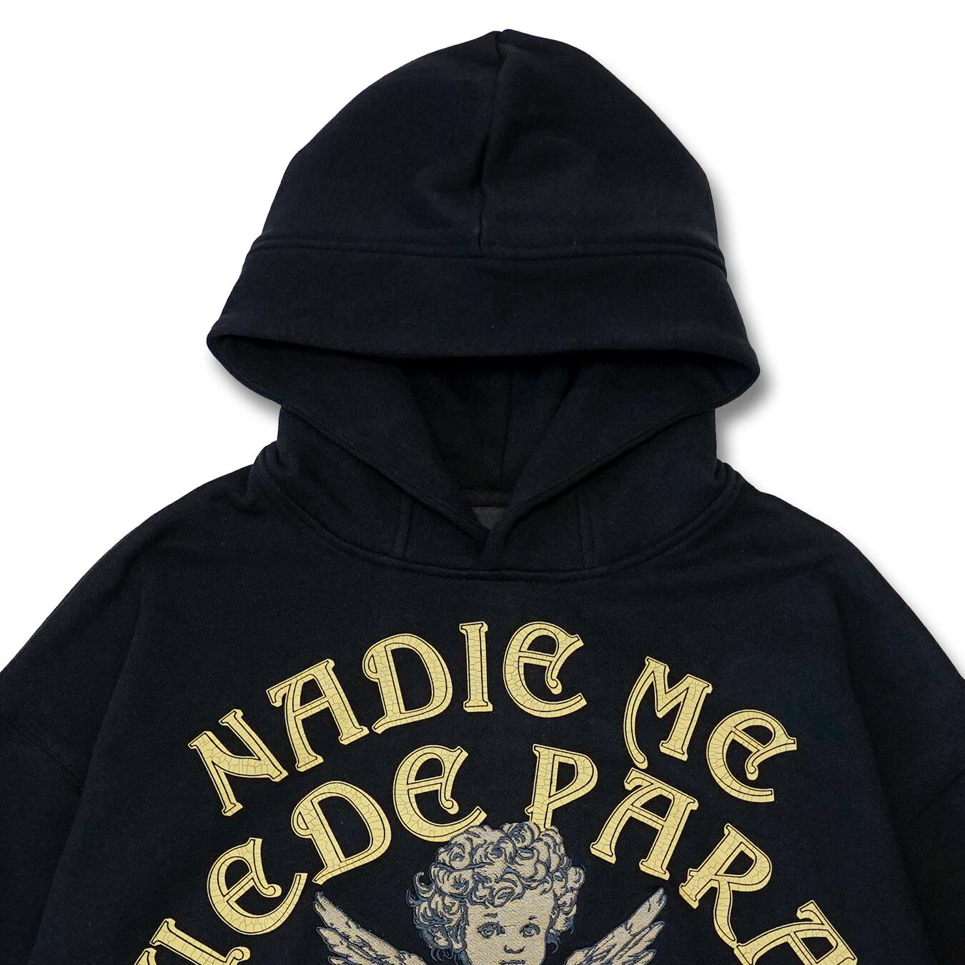 心を揺さぶるエンジェルの力強さと決意を感じさせるアイテム、T.C.R NADIE ME PUEDE PARAR PULLOVER HOODIE。細かく打ち込まれたアイコニックなエンジェル刺繍にクラックプリントよりリッチなデザインアクセントや袖口や裾に施されたディストレスト加工により、個性的なデザインが際立ちます。