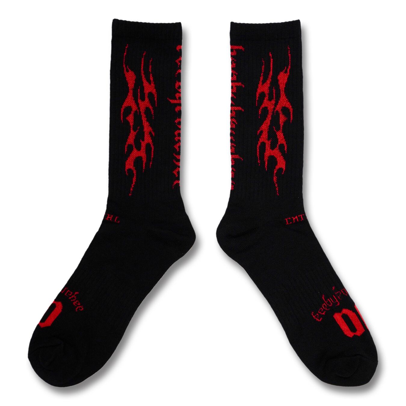 T.C.R TRIBAL FLAME SOCKS - BLACK/RED