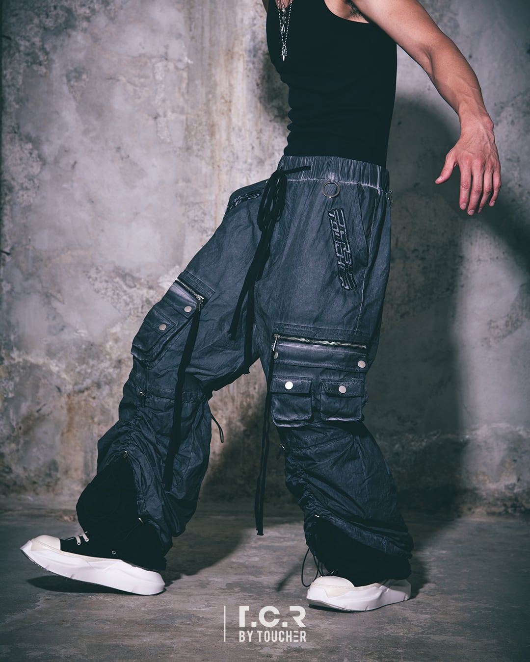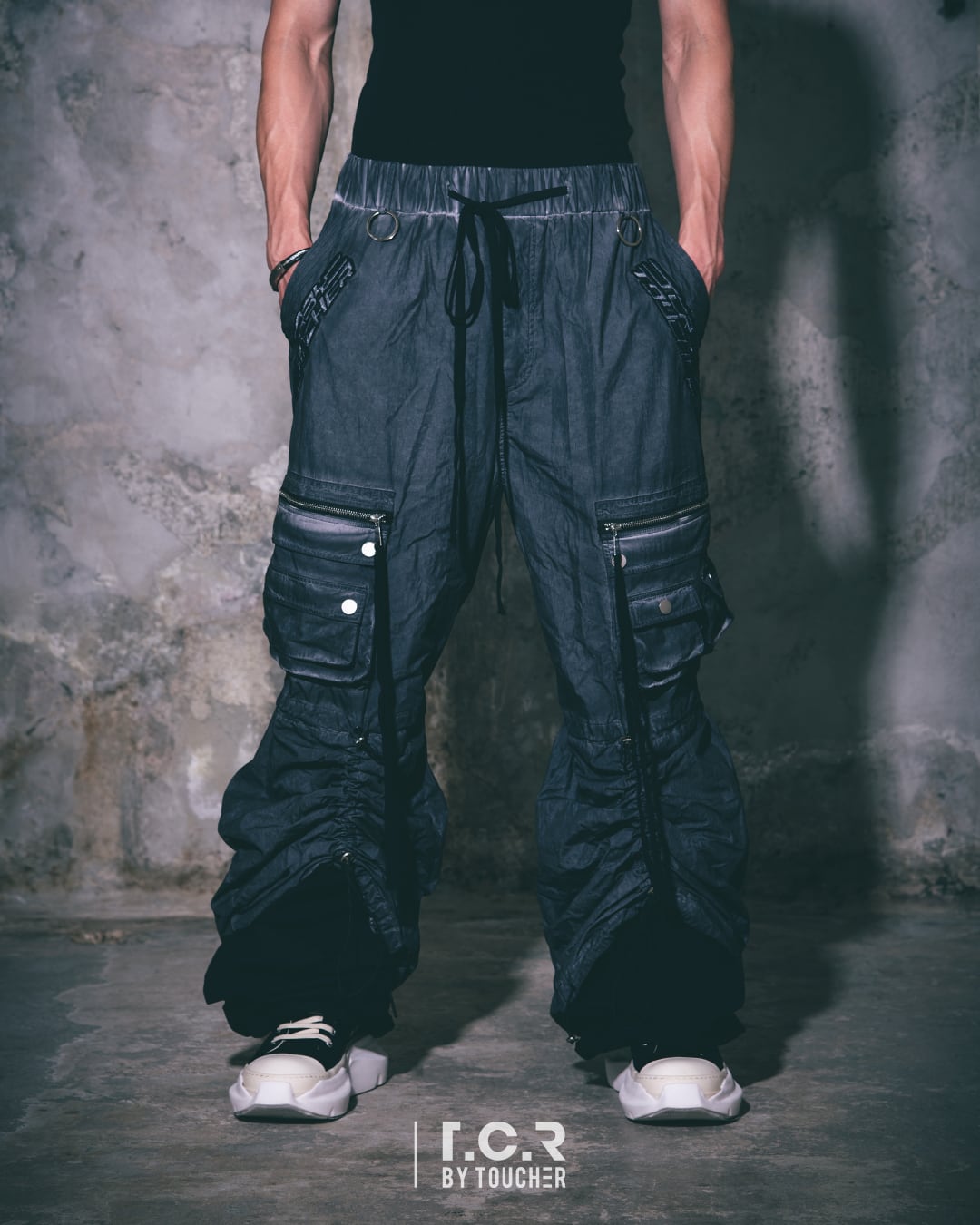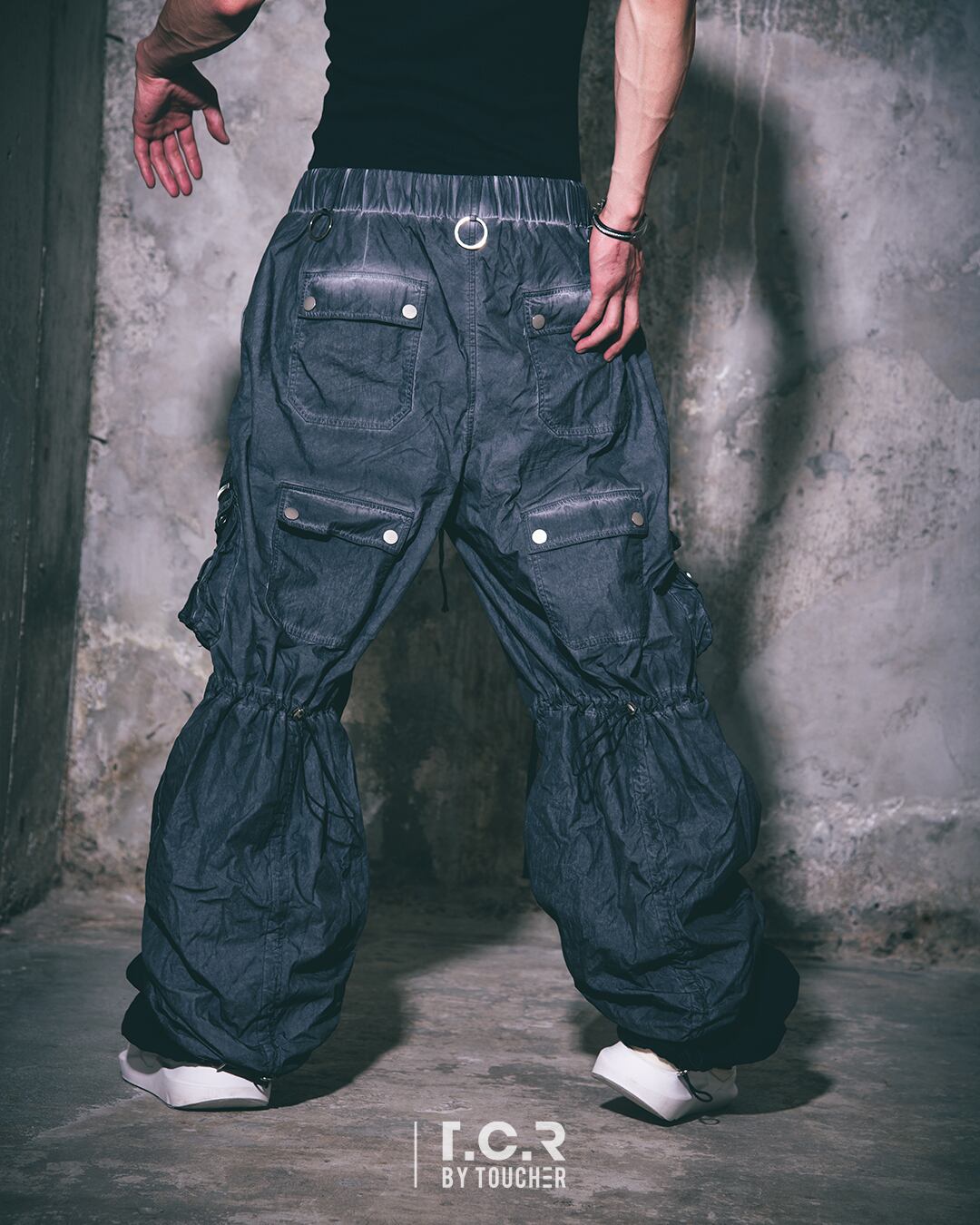 T.C.R TRANSFORM LAYERD BAGGY PANTSは、ストリートスタイルとTECH STYLEを兼ね備えた洗練されたバギーパンツです。レイヤードされたワイドレッグはドローコード使用し、好みのシルエットを作りスタイリングに合わせてトランスフォーム可能。